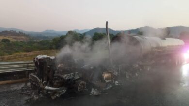 Se incendia tráiler pipa tras choque en la autopista Siglo XXI