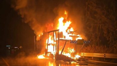 RED 113 MICHOACÁN/Redacción Ziracuaretiro, Mich.- 17 de enero de 2026.- Un tráiler tipo nodriza que transportaba vehículos nuevos se incendió…
