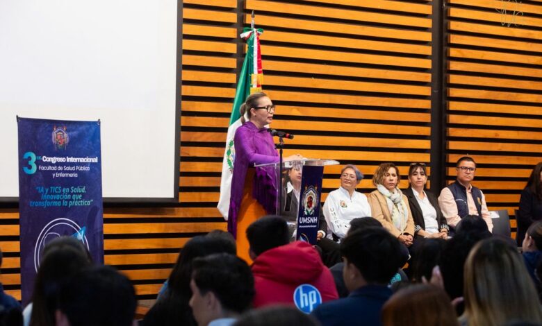 Morelia, Michoacán, a 25 de noviembre de 2025.- A utilizar la Inteligencia Artificial (IA) para generar beneficios a la comunidad convocó la rectora de la Universidad Michoacana de San Nicolás de Hidalgo (UMSNH), Yarabí Ávila González, al estudiantado, al inaugurar el Tercer Congreso Internacional “AI y TICS en Salud. Innovación que transforma la práctica”, organizado por la Facultad de Salud Pública y Enfermería.