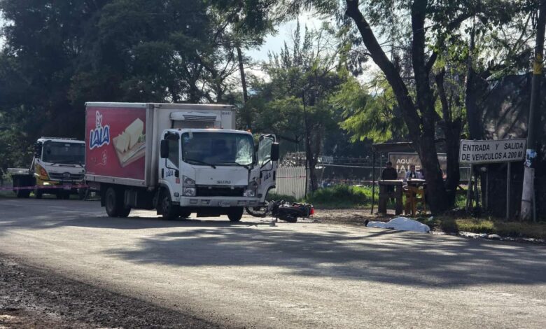Adulto mayor pierde la vida en choque de moto y camión repartidor, en el Libramiento de Jacona