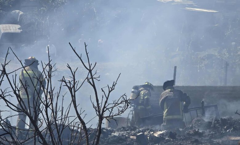 Morelia, Mich.- Viernes 13 de febrero de 2026.- Al menos tres casas de madera y láminas de cartón fueron devastadas por un incendio durante la tarde de este viernes en la colonia Ampliación 2 de Diciembre, aledaña a la colonia Ciudad Jardín, en la zona poniente de Morelia; en el hecho también murió un canino calcinado, informaron autoridades policiales y de rescate.