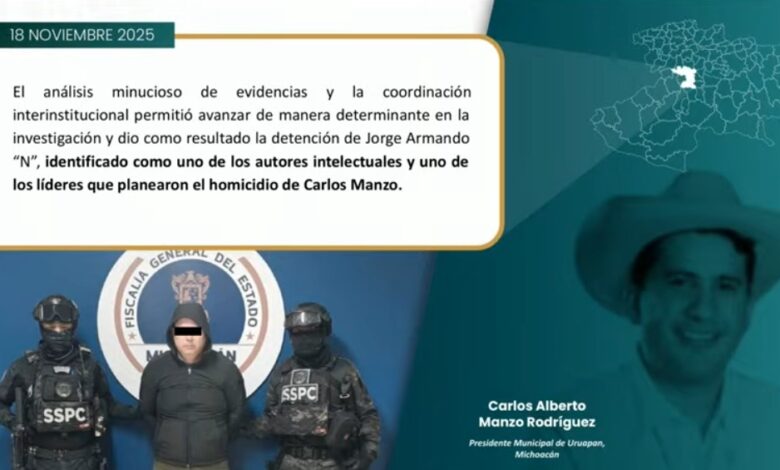 Arrestado en Morelia, uno de los presuntos autores intelectuales del asesinato de Carlos Manzo
