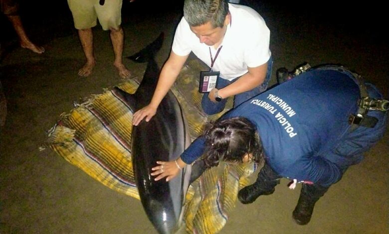 Auxilian a delfín varado en Playa Tortuga, Lázaro Cárdenas