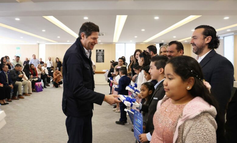Morelia, Michoacán, 27 de noviembre de 2025.- Con gran entusiasmo, el Presidente Municipal de Morelia, Alfonso Martínez Alcázar, encabezó la ceremonia de toma de protesta del Cabildo Infantil 2025-2026, iniciativa impulsada por el Sistema para el Desarrollo Integral de la Familia (DIF) Morelia que preside Paola Delgadillo Hernández.