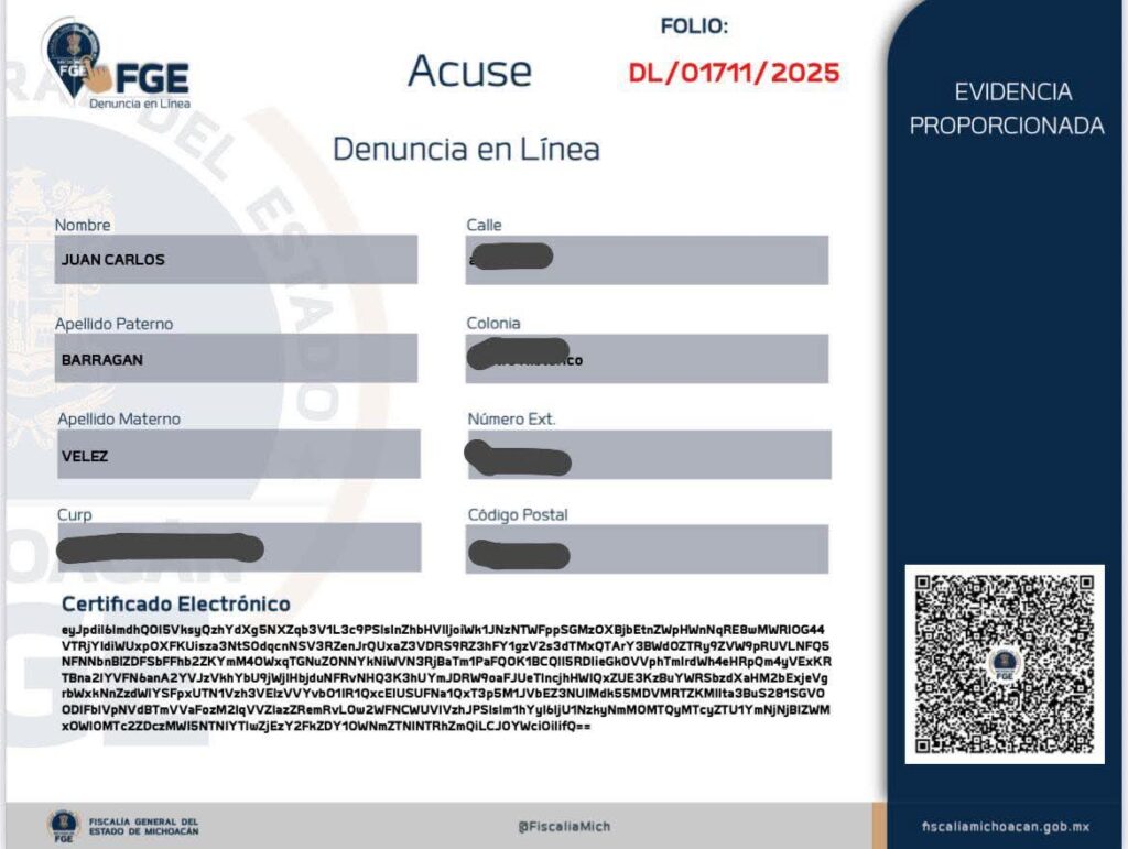 Morelia, Michoacán.- El diputado Juan Carlos Barragán, informó que presentó una denuncia por difamación contra los Valencia, publicó lo siguiente en sus redes sociales: