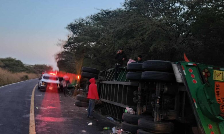 Ecuandureo, Mich.- 08 de noviembre de 2025.- Un camión cargado con refrescos volcó en la carretera Zamora – Ecuandureo, sin que por fortuna se reportaran víctimas, sin embargo la mercancía fue blanco de rapiña por parte de decenas de personas.