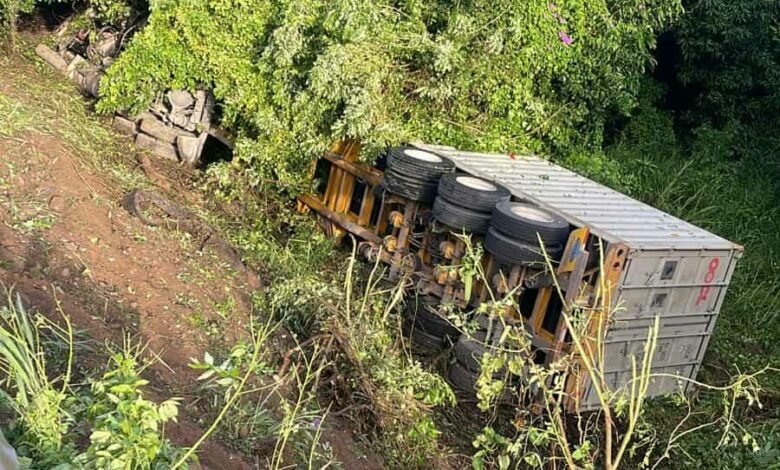 La Unión, Gro.- 11 de octubre de 2025.- Un camión de carga salió del camino la mañana de este sábado en la autopista Siglo XXI, en el tramo Las Cañas-Feliciano, sin que se registraran personas lesionadas.