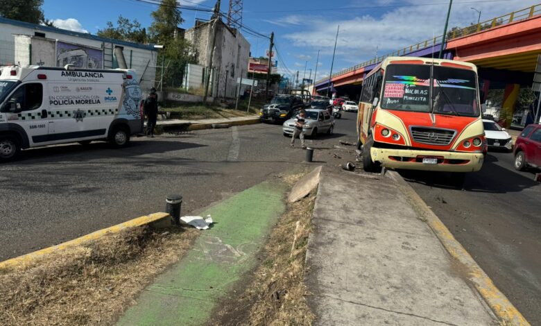 Morelia, Mich.- Domingo 07 de diciembre de 2025.- El chofer de un camión del transporte público urbano chocó contra unos bolardos de la ciclovía ubicada en el Distribuidor Vial Salida a Quiroga, al poniente de Morelia. El incidente dejó a tres menores levemente lesionados, informaron fuentes de rescate y policiales.