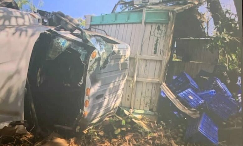 El fatal incidente tuvo lugar cerca de la población de Charapendo, donde el camión de carga color azul de la empresa «Brandon’s Fresh», se salió de control y se salió del camino para terminar volcado sobre su costado izquierdo.