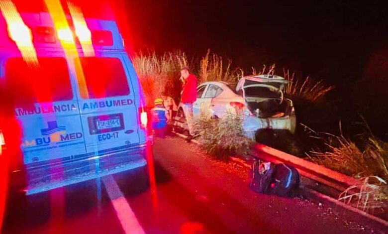 La Unión, Guerrero.- 13 de noviembre de 2025.- Una pareja resultó levente herida al sufrir un accidente, en el que su auto se salió de la carpeta asfáltica, mientras circulaban por la autopista Siglo XXI.