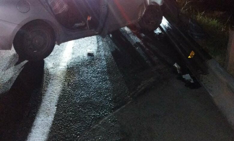 El primer suceso fue a la altura del kilómetro 203+200 del tramo Uruapan-Lázaro Cárdenas, donde un automóvil Chevrolet Aveo, modelo 2020, salió de control y terminó impactándose contra la barrera metálica de contención.