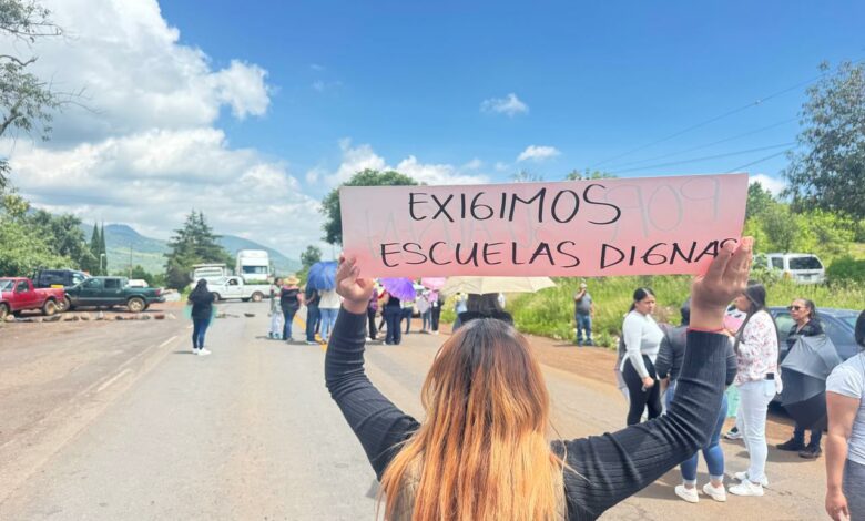 Morelia, Mich.- Viernes 05 de septiembre de 2025.- Un grupo de personas bloqueó la carretera Morelia-Quiroga, a la altura de la población de Iratzio. Según fuentes allegadas al tema, los manifestantes exigen escuelas dignas y les den solución a otros temas educativos.