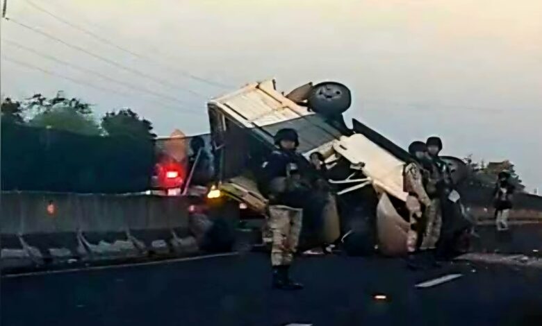 De acuerdo con las autoridades, el percance se registró en las inmediaciones de la comunidad de El Ceñidor, perteneciente al municipio de Múgica, donde una camioneta tipo pickup de color blanco colisionó contra el muro de contención central y volcó.