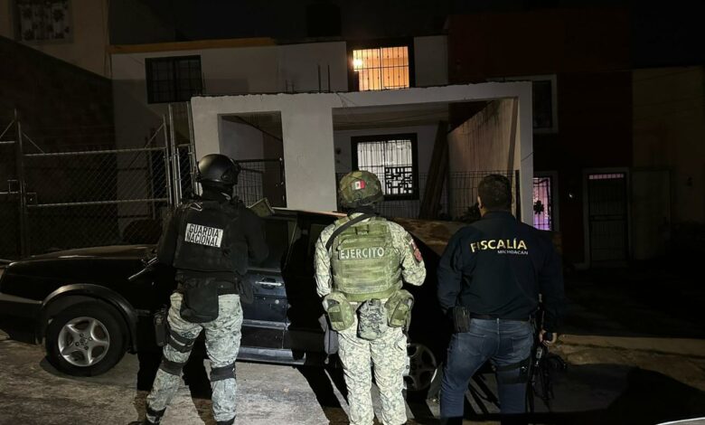 Morelia, Mich.- Viernes 05 de diciembre de 2025.- Elementos de la Fiscalía General del Estado (FGE) decomisaron 24 dosis de cocaína tras catear un inmueble ubicado en el fraccionamiento Ario 1815, en la zona poniente de Morelia, informó la citada institución.