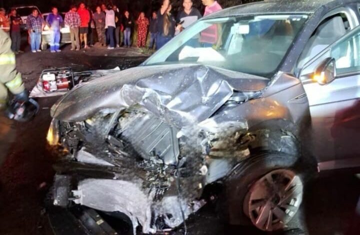RED 113 MICHOACÁN/Redacción. Uruapan, Mich.- 26 de enero de 2026.- Un saldo preliminar de tres personas lesionadas, una de ellas prensada, dejó un choque de frente entre un vehículo particular y un taxi en la carretera «libre» Uruapan-Lombardía.