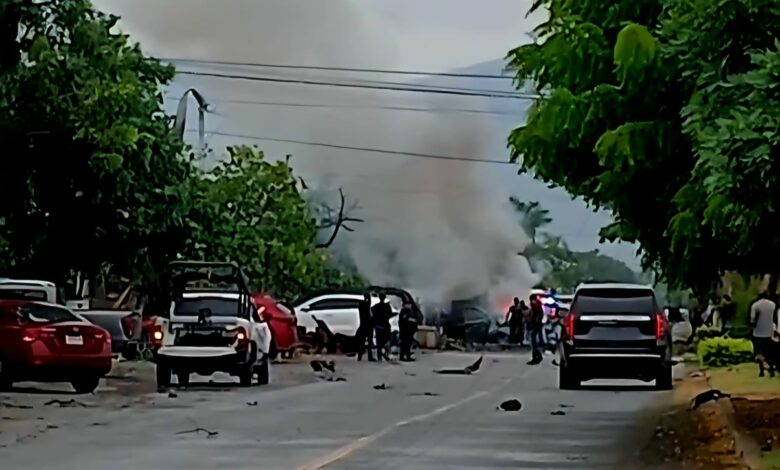 Coahuayana, Mich.- 06 de diciembre de 2025.- Minutos antes del mediodía de este sábado, un fuerte estallido sacudió la zona centro del municipio de Coahuayana, donde los primeros reportes señalan un posible ataque con coche bomba o con artefactos explosivos.
