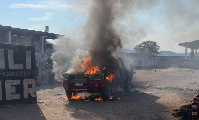 RED 113 MICHOACÁN/Redacción. Huetamo, Mich.- Martes 09 de diciembre de 2025.- Una camioneta ardió en llamas tras un estallido provocado por una fuga de gas LP en uno de los cuatro cilindros que transportaba, los cuales eran abastecidos en el negocio denominado «Gas Mundial», ubicado en la cabecera municipal de Huetamo; el hecho también dejó dos lesionados, informaron fuentes allegadas al tema.
