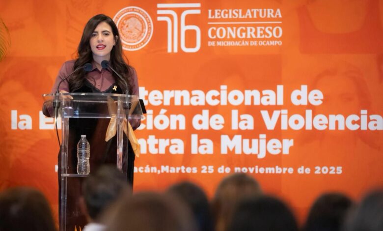 Morelia, Michoacán, a 25 de noviembre de 2025.- En el marco del Día Internacional para la Eliminación de la Violencia contra las Mujeres, la presidenta del Congreso del Estado, Giulianna Bugarini, llamó a asumir con seriedad y responsabilidad la tarea institucional de proteger a todas las mujeres y niñas de Michoacán.