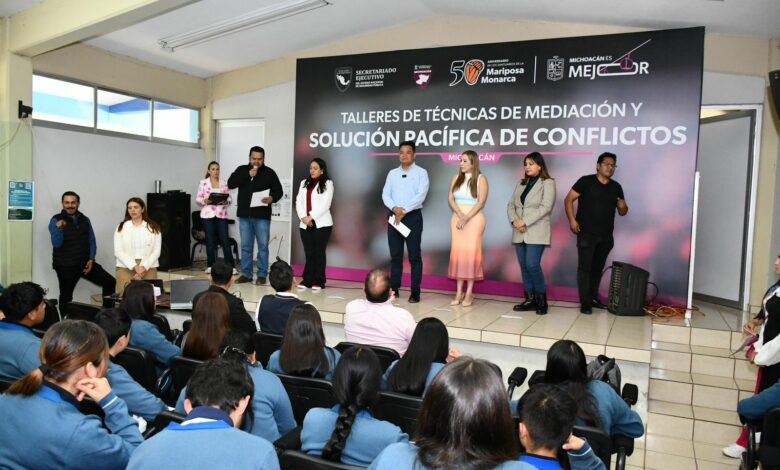 Redacción. Tingambato, Michoacán, 22 de octubre de 2025.- Con el propósito de fortalecer la cultura de paz y la prevención del delito desde las juventudes, el Secretariado Ejecutivo del Sistema Estatal de Seguridad Pública llevó a cabo en el Colegio de Bachilleres de Tingambato el taller “Técnicas de Mediación y Solución Pacífica de Conflictos”, dirigido a estudiantes, docentes y personal directivo.