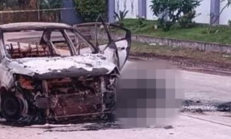 Hallan a persona calcinada junto a vehículo quemado en San Juan Benito Juárez, Cuitzeo