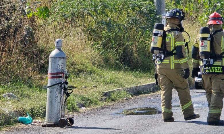 Se supo que dos sujetos fueron vistos jalando un diablito en el que transportaban el tanque de 68 kilos; sin embargo, al notar la presencia de patrulleros municipales, huyeron y abandonaron el objeto del delito en el predio.
