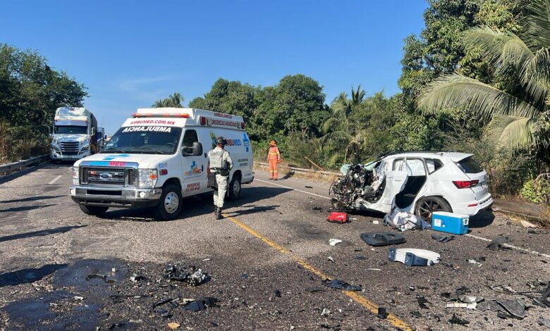El fuerte accidente se registró este lunes en el a la altura del kilómetro 297, del tramo carretero Feliciano – Lázaro Cárdenas donde colisionaron un carro de la marca Cupra de color blanco, con placas NAK-318-A y un camino “madrina” Kenworth color gris, con matrícula 24-BJ-7Y.