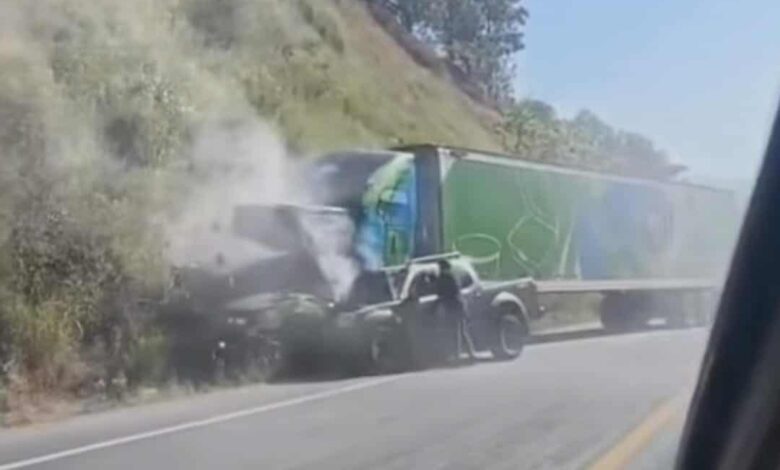 Uruapan, Mich.- 04 de noviembre de 2025.- Un hombre pereció prensado y dos más resultaron murió prensado tras el choque entre una camioneta y un tráiler la mañana de este martes sobre la autopista Siglo XXI, en el tramo Uruapan-Pátzcuaro.