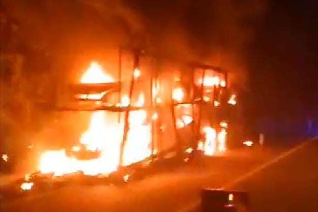 Los Bomberos de Nueva Italia, acudieron para combatir las llamas, pero a pesar de sus esfuerzos, el fuego consumió por completo uno de los remolques y cinco autos que eran transportados en la unidad, los cuales quedaron totalmente calcinados.