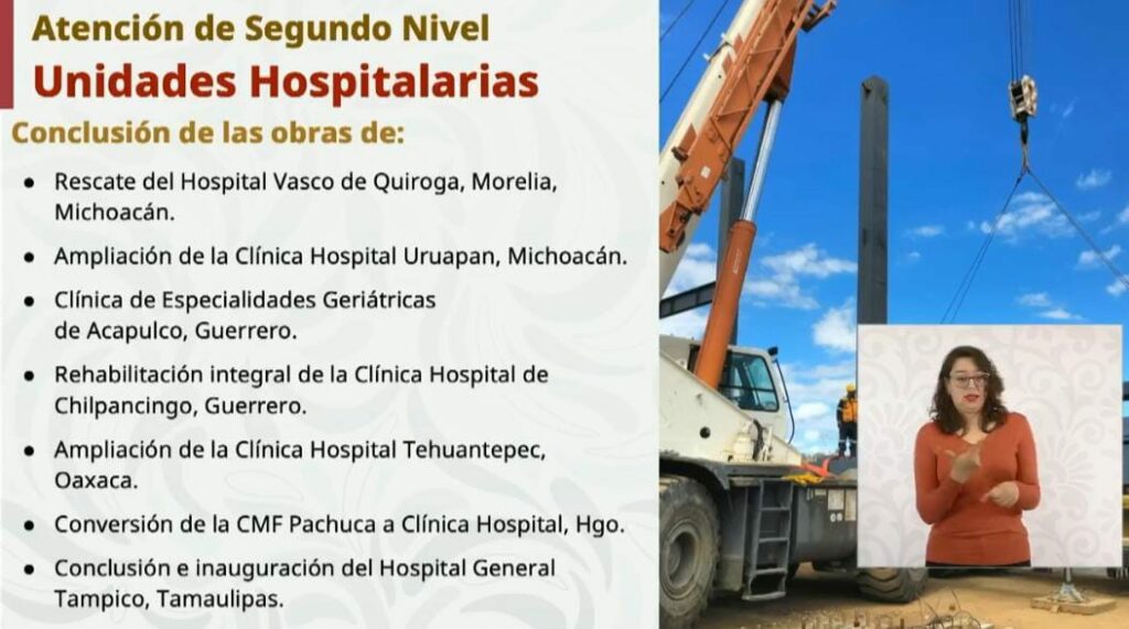 «Vamos a concluir este año siete obras, una de ellas es el rescate del Hospital Vasco de Quiroga en Morelia, este hospital dejó de funcionar cuando se abrió el hospital regional, lo vamos a reconvertir», dijo.