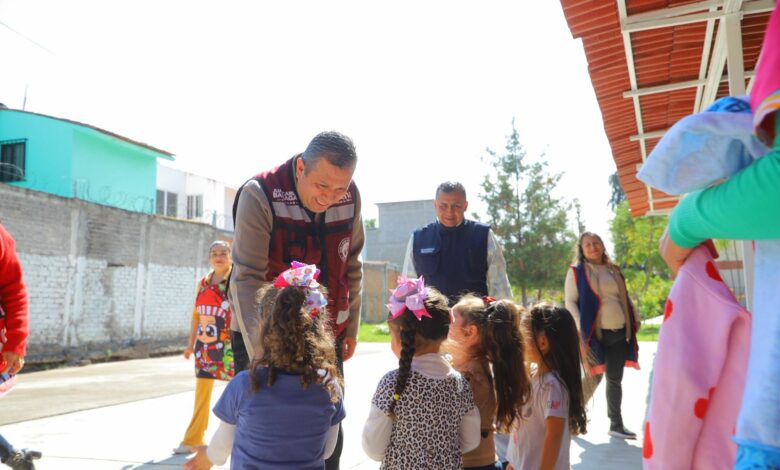 Morelia, Michoacán, a 12 de diciembre de 2025.- El diputado Juan Carlos Barragán visitó un preescolar para conocer las necesidades y llevar el programa Échale una Mano a las Escuelas, un esfuerzo ciudadano que ya ha beneficiado a más de 950 planteles en colonias, comunidades y tenencias de Morelia.
