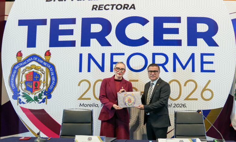 Morelia, Michoacán, a 12 de enero de 2026.- “La Universidad Michoacana de San Nicolás de Hidalgo (UMSNH) que recibimos estaba de pie, pero tambaleante. La Universidad que hoy presentamos está firme, con rumbo y futuro sustentable”, afirmó la rectora Yarabí Ávila González, al presentar su Tercer Informe de Actividades ante el Consejo Universitario.