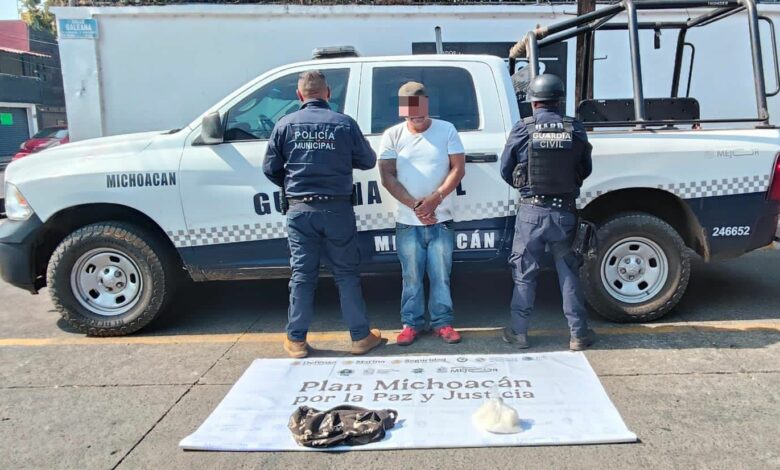 RED 113 MICHOACÁN/Redacción. Taretan, Mich.- 22 de diciembre de 2025.- Elementos de la Guardia Civil y Policía Municipal capturaron a un hombre en posesión de droga sintética de la conocida como «cristal», con un peso aproximado de un kilogramo, hechos ocurridos en esta demarcación de Taretan.