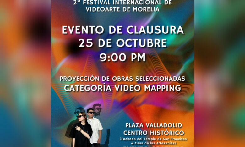Redacción. Morelia, Michoacán; 24 de octubre de 2025.- La Plaza Valladolid se convertirá este sábado en un lienzo de proyección para presentar la clausura del segundo Festival de Videoarte Morelia, que organizó el colectivo Pupila con la proyección de obras seleccionadas en la categoría de Videomapping; así lo anunció Thelma Aquique Arrieta, titular de la Secretaría de Turismo (Sectur).