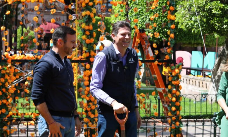 Morelia, Michoacán; 23 de octubre de 2025.-La capital michoacana se convierte en un vibrante mosaico de colores, aromas y tradiciones con la llegada del Día de Muertos. En ese sentido, el Presidente Municipal, Alfonso Martínez Alcázar, acompañado por la presidenta honoraria del DIF, Paola Delgadillo Hernández, encabezó la plantación de flores de cempasúchil en la Plaza de Armas, llenando el corazón de Morelia con el emblemático aroma y color que caracterizan esta festividad.