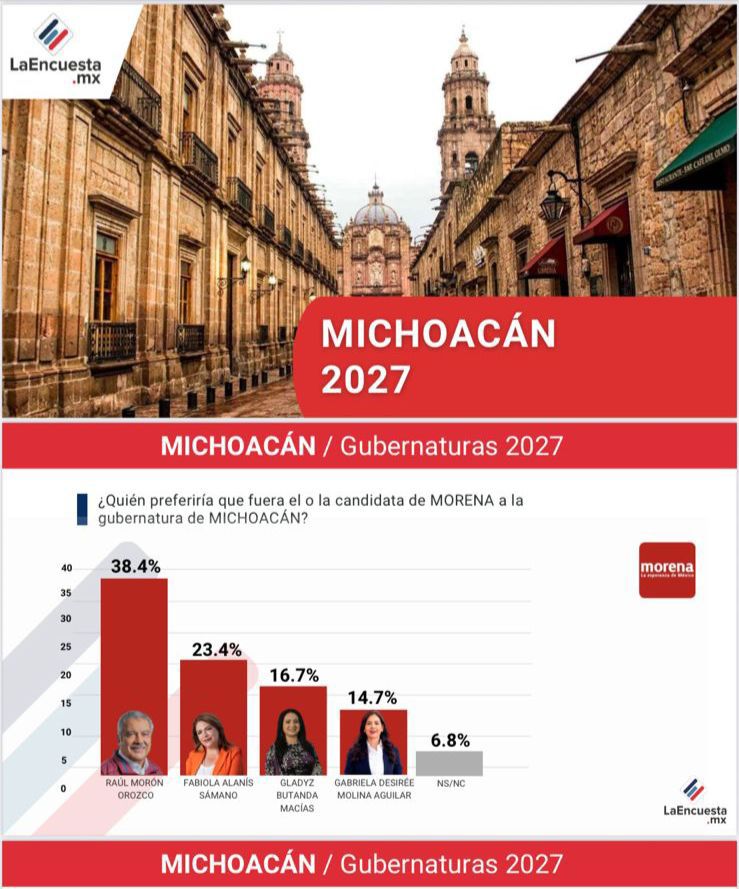 Con una ventaja sostenida en los sondeos internos y el liderazgo que ha mostrado en los distintos sectores sociales, Raúl Morón se perfila como el abanderado natural de Morena y el favorito para encabezar el próximo gobierno estatal, en un escenario donde la fuerza guinda mantiene la delantera rumbo a las elecciones.
