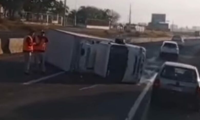 Se apreció que las unidades involucradas en el incidente son un automóvil blanco y un camión de carga, este último terminó volcado. La situación fue reportada al número de emergencias; después acudieron rescatistas, quienes atendieron a los ocupantes de los vehículos siniestrados.