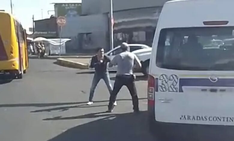 Morelia, Mich.- Martes 10 de febrero de 2026.- La mañana de este martes, dos hombres estuvieron a punto de liarse a golpes, aparentemente derivado de un problema de tránsito, hecho que se registró en la rotonda del Distribuidor Vial Salida a Charo, al oriente de Morelia.