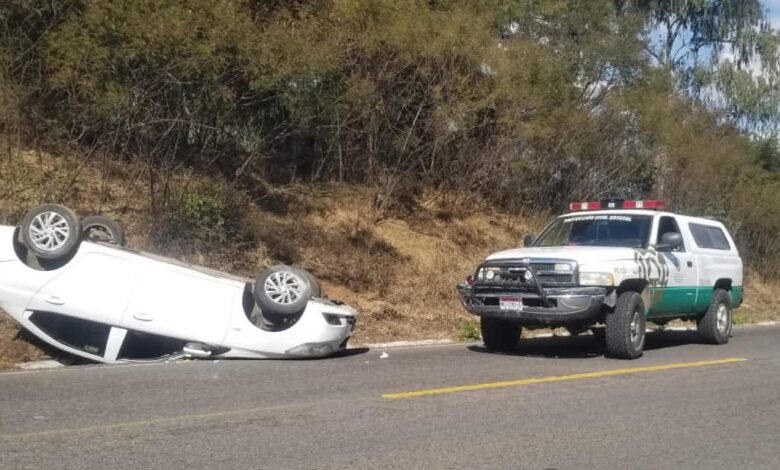 RED 113 MICHOACÁN/ Redacción. Pátzcuaro, Mich.- Viernes 19 de diciembre de 2025.- La volcadura de un vehículo compacto se registró la tarde de este viernes sobre la carretera libre Pátzcuaro–Uruapan, a la altura del sitio conocido como El Columpio, dentro del municipio de Pátzcuaro.