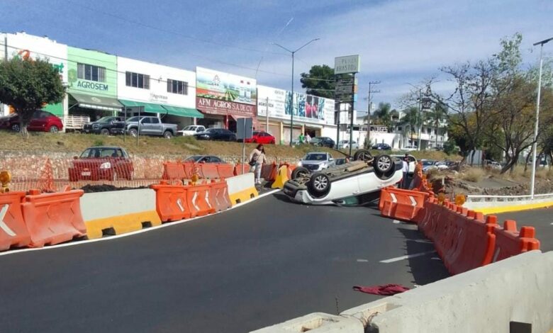 Se registra volcadura de camioneta en la obra del Distribuidor Vial Eréndira, Morelia