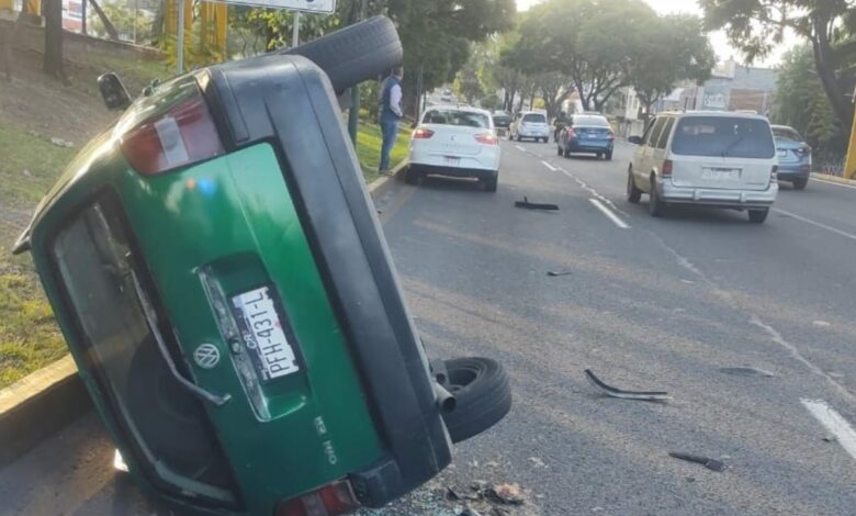 Morelia, Mich.- Martes 14 de octubre de 2025.- La mañana de este martes se registró la volcadura de un vehículo compacto sobre el Periférico Paseo de la República, en la zona oriente de Morelia, indicaron autoridades policiales, las cuales agregaron que no hubo lesionados.