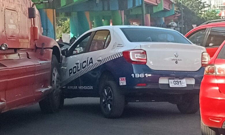 Después sucedido una colisión entre un tráiler y una patrulla de la Policía Auxiliar sobre la lateral de la avenida Madero Oriente, en el sentido de Ciudad Industrial hacia Las Tarascas, a pocos metros de la rotonda del Distribuidor Vial Salida a Charo.