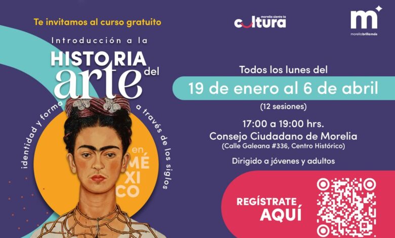 El primer taller es “Introducción a la historia del arte en México: identidad y forma a través de los siglos”, que consta de 12 sesiones programadas para los días lunes, del 19 de enero al 6 de abril, en un horario de 17:00 a 19:00 horas. La sede de esta actividad será el Consejo Ciudadano e Morelia, ubicado en la calle Galeana #336, en el Centro Histórico.