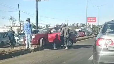 Choque volcadura de auto deja 2 personas heridas sobre avenida Solidaridad, en Morelia