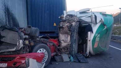 Se registra choque de frente entre camiones de carga en la autopista Siglo XXI