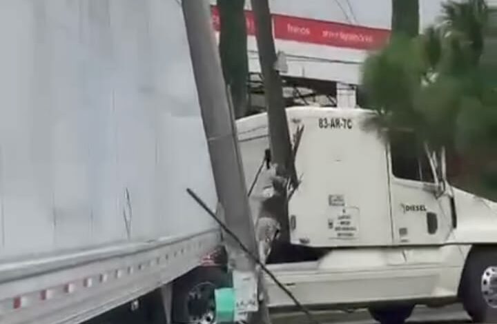 Tráiler destroza 2 postes en la Av. Periodismo, uno es de la CFE