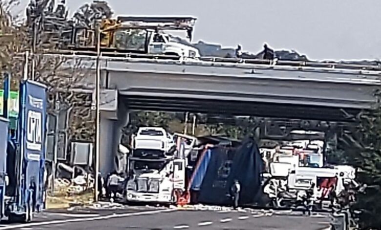 Tráiler se impacta contra tractocamión nodriza en la México-Guadalajara; hay un herido y daños materiales