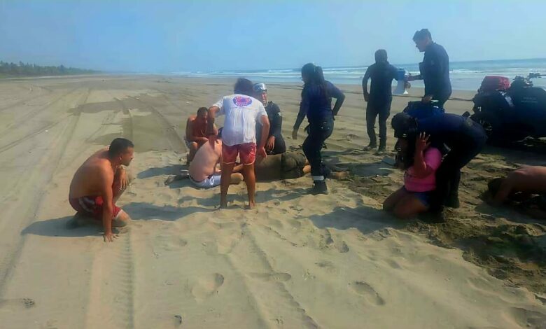 Lázaro Cárdenas, Mich.- 23 de Noviembre de 2025 – Un turista originario de la ciudad de Morelia, que fue arrastrado por las olas, pudo ser rescatado con vida gracias a la oportuna intervención de salvavidas en Playa Azul.