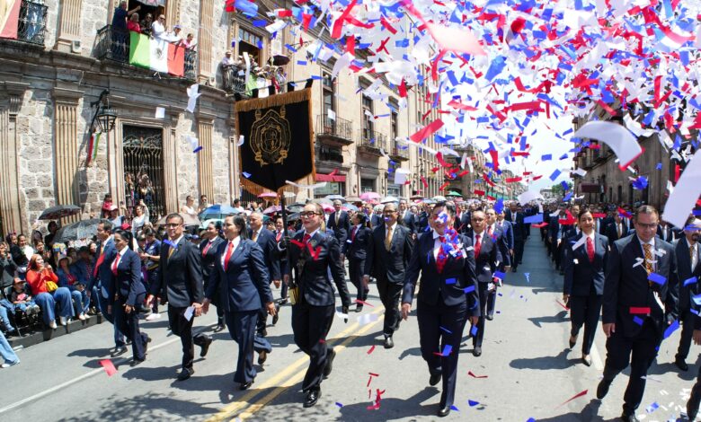 La delegación nicolaita representada por más de 900 docentes, administrativos, directoras, directores, funcionarias, funcionarios, estudiantes y exalumnos, así como por la reconocida Banda de Guerra, desfilaron mostrando una vez más que la Universidad Michoacana no sólo forma profesionales, sino también ciudadanas y ciudadanos comprometidos con su historia y su gente.