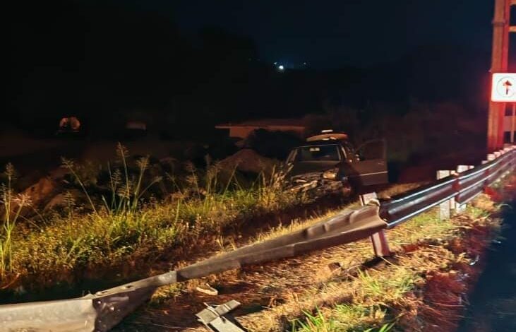 Uruapan, Mich.- 22 de noviembre de 2025.– Un hombre resultó levemente lesionado al sufrir un accidente, en el que el vehículo que tripulaba, tras una aparente falla mecánica golpeó contra una barrera metálica de contención y terminó por fuera de la carpeta asfáltica.