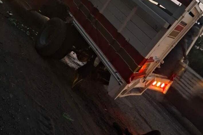 Al respecto se pudo establecer que la mañana de este jueves, una camioneta doble rodado de color rojo con blanco, se dirigía a campos de pepino cuando protagonizó un choque volcadura a la altura del puente de las vías férreas.